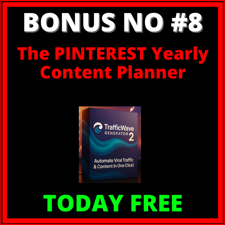 TrafficWave Generator 2.0 is the most advanced Pinterest traffic automation tool of 2025, designed to make video pin creation, scheduling, and branding faster and easier than ever.
